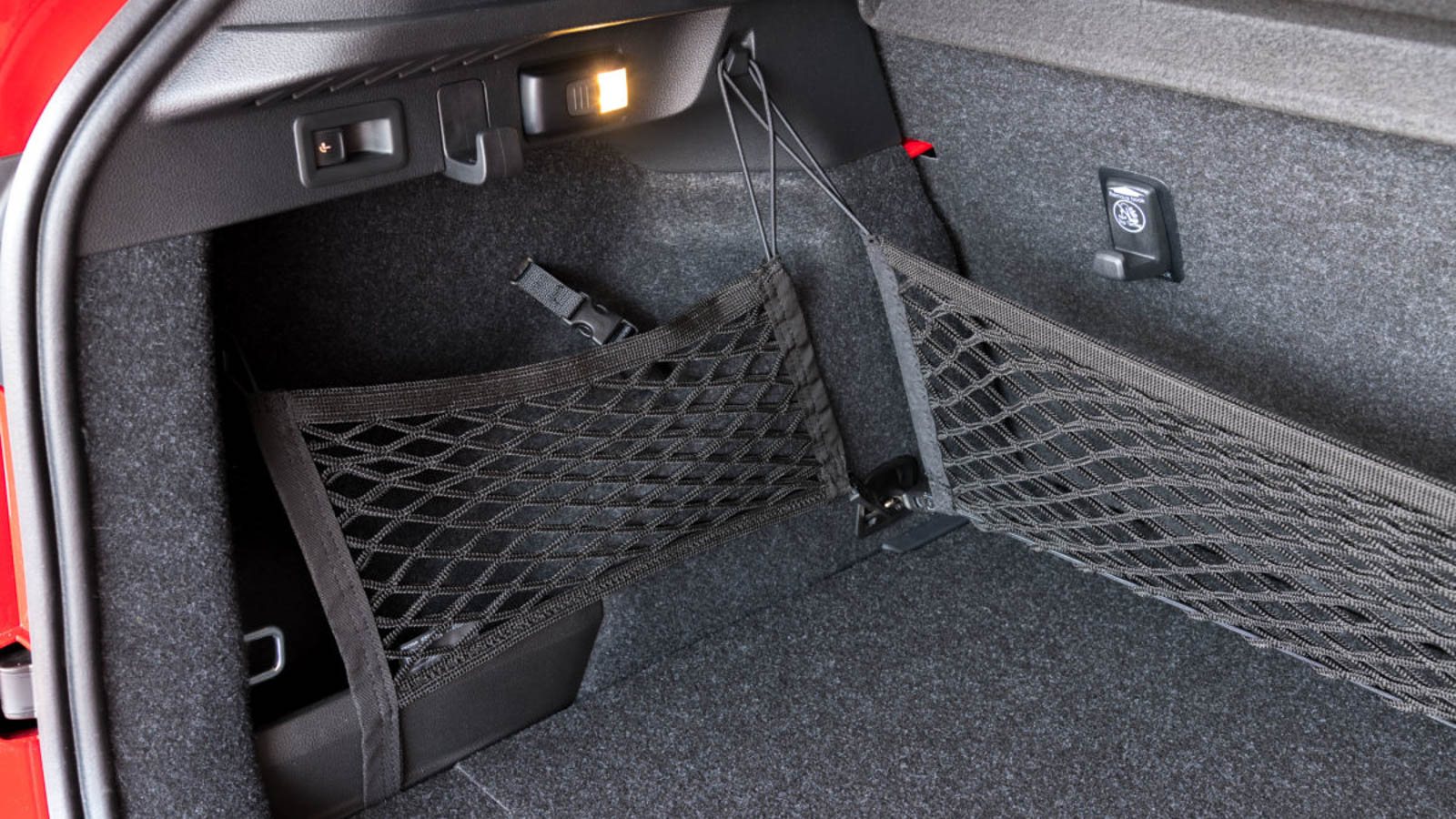 Por ejemplo, el suelo del maletero puede ser de moqueta por un lado y de goma por el otro y, de manera reversible, colocarlo por la cara que más te convenga: si vas con objetos sucios o mojados, usar la parte de goma para no estropear la moqueta y reservarla para colocar las maletas o el equipaje. También encontrarás redes para colocar pequeños objetos y que no vayan sueltos por el maletero y una un piso que puedes colocar a dos alturas para variar la capacidad del maletero o reservar un espacio para guardar objetos debajo.
