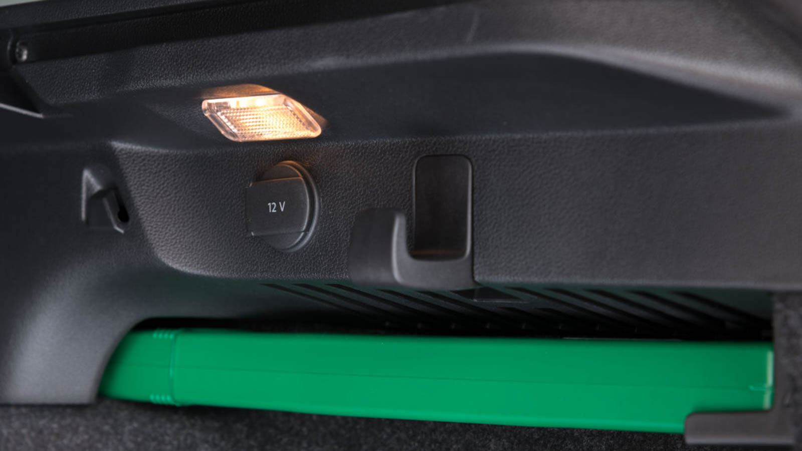Bajo el asiento del acompañante, encontrarás un cajón oculto con no mucho espacio, pero sí suficiente para, por ejemplo, llevar los chalecos reflectantes. También es interesante que la guantera tiene buena capacidad, está forrada, tiene luz y ventilación… algo que no pueden decir casi ninguno de sus rivales.
