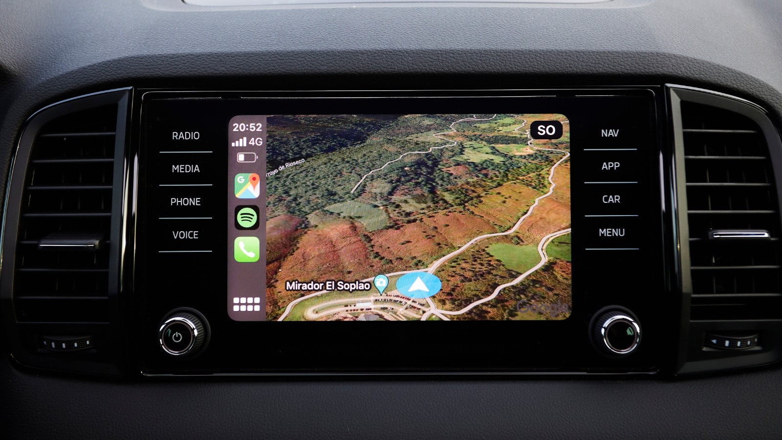 De serie, lleva 8 altavoces, tomas USB (enchufe de 230V y conexiones traseras en opción), cargador inalámbrico para teléfonos, mandos físicos para el climatizador (de dos zonas con salidas de aire posteriores), asistente virtual con manejo por voz y compatibilidad con Android Auto y Apple CarPlay (este último también sin cable). No echamos en falta un Head-Up Display, pero lamentamos que la integración del navegador precise de un sobrecoste cercano a los 400 euros.