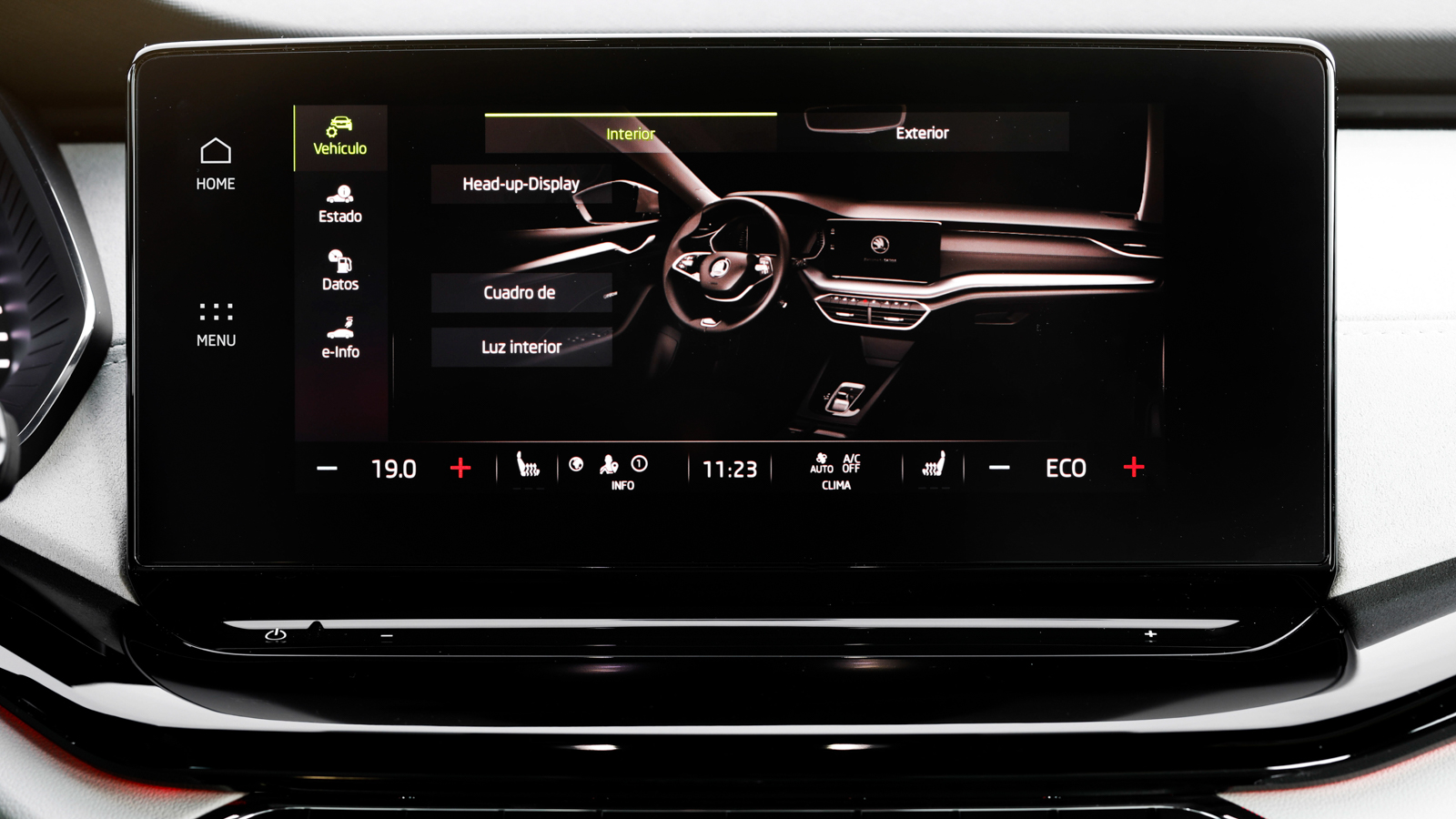 Hay dos opciones para el Skoda Octavia iV en cuanto al sistema multimedia, ambos con pantallas táctiles sin posibilidad de mando satélite y compatibles con Android Auto y Apple CarPlay. Para el de 204 CV, tenemos la Swing (pantalla de 8” sin navegador) de serie y posibilidad de pedir el tope Columbus con pantalla de 10”, navegador y funcionalidades exclusivas como el reconocimiento de órdenes por voz. En el acabado Style y la versión RS,la pantalla es la grande, 10,25”, pero el sistema multimedia es el Bolero y, del mismo modo, el Columbus es una opción. Muestran información específica del sistema híbrido, consumo, recarga y demás.El cuadro de mandos es digital a color de 4,2”. En el Octavia puede haber hasta 5 tomas USB y una toma corriente 230 V.