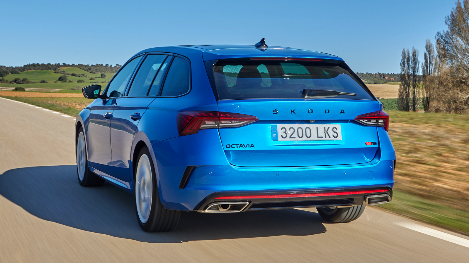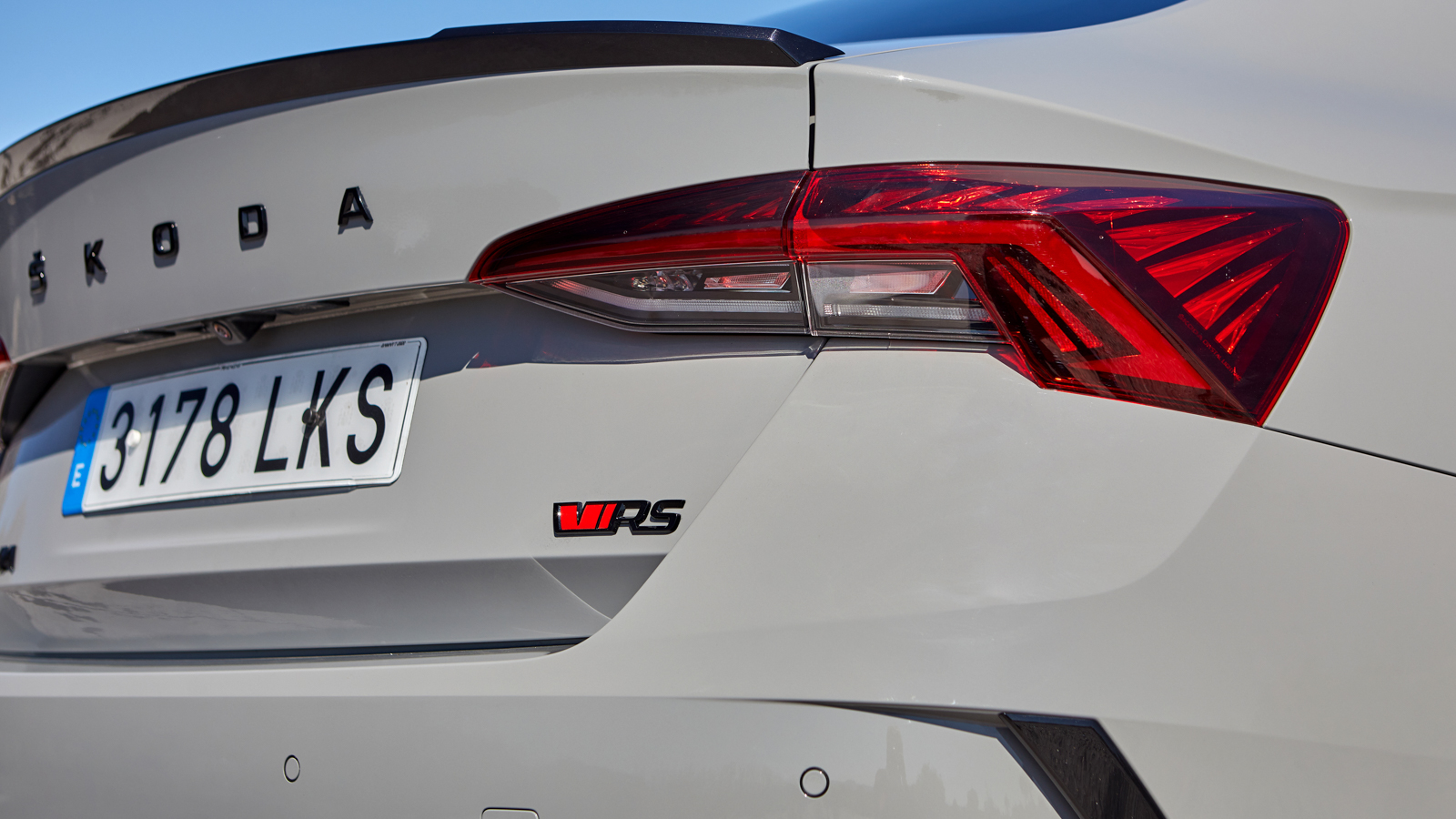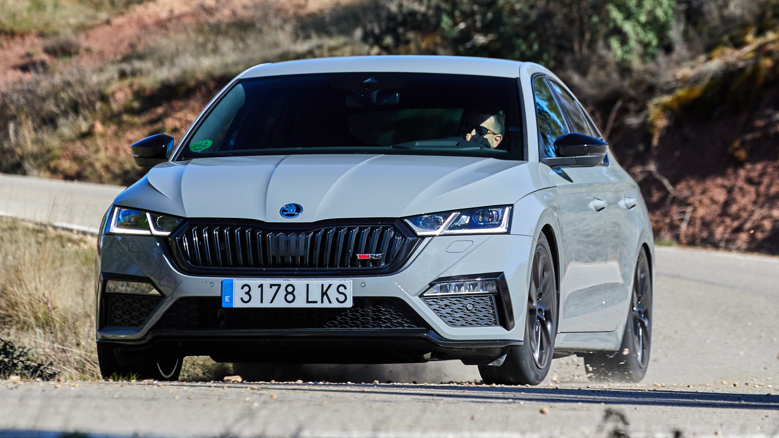 En España, Škoda ofrece de serie, sin coste extra, la suspensión de dureza regulable DCC. Esta suspensión permite elegir tres niveles de firmeza de los amortiguadores: Comfort, Normal y Sport. Entre las dos posiciones extremas se nota la diferencia. En la posición Comfort la carrocería va un poco suelta para circular rápido, hasta el punto de que puedes notar que, si vas muy rápido, el coche no hace los apoyos más fuertes con la precisión deseable y se alarga la trazada por el exterior del punto que habías tomado como referencia. La posición Sport es buena para ir rápido por zonas de curvas, porque no hace que se endurezca la capacidad de filtrado hasta el punto de producir rebotes que descoloquen el coche en pleno apoyo si las ruedas pisan un bache. No esperes un coche tan inmediato ni visceral como un Honda Civic Type R, pero sí mucho más gratificante de llevar rápido que un Octavia convencional, cuya suspensión de serie es blanda y orientada al confort.