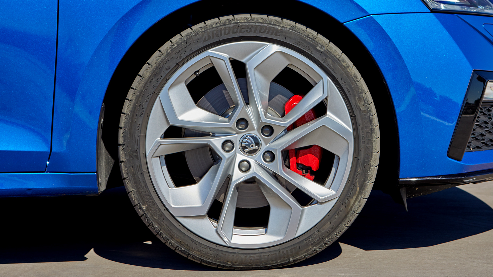 Todos los Octavia RS tienen una suspensión más firme que el resto de la gama Octavia, con unos muelles más cortos que reducen la distancia de la carrocería al suelo en 15 mm. Van equipados de serie con llantas de 18 pulgadas y neumáticos 225/45 R18 91Y. En opción se pueden pedir con llantas de 19 pulgadas y neumáticos 225/40 R19 93Y.