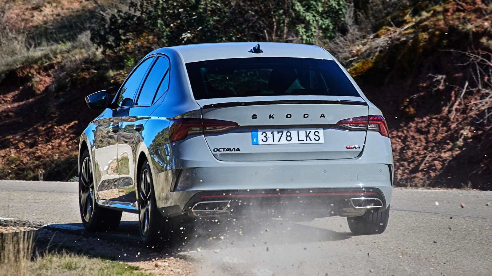 De las unidades disponibles durante la presentación nacional, las había con neumáticos Bridgestone S005 (de orientación deportiva) y Pirelli Cinturato P7 (diseñados para ser más confortables que eficaces en curva). Con los Bridgestone el equilibrio es correcto, pero creo que incluso con un neumático más deportivo, como un Michelin Pilot Sport 4 S, la capacidad para ir rápido por carreteras de doble sentido de cualquier Octavia RS alcanzaría un equilibrio ideal.