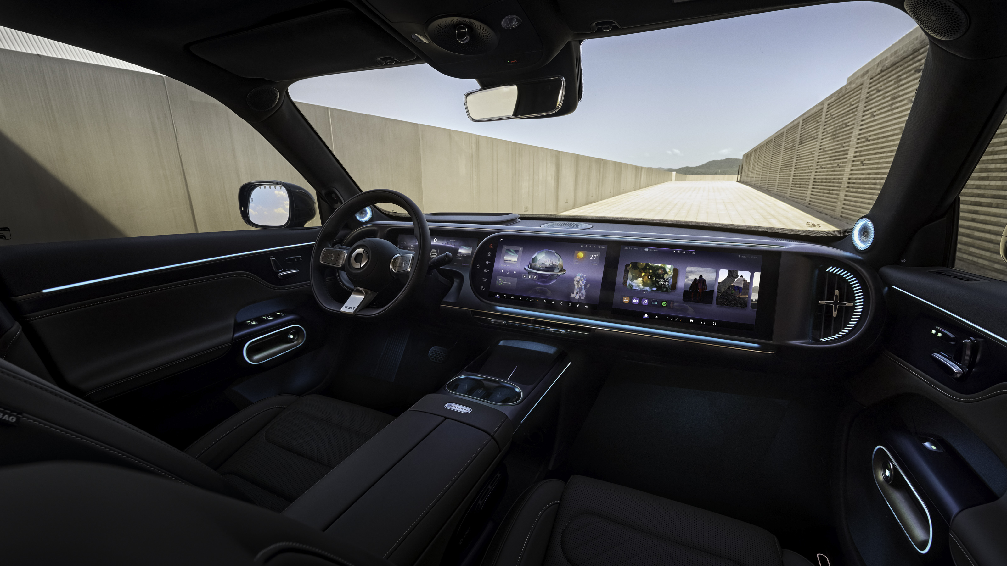 Este sistema de pantallas también está integrado con un sistema de sonido Sennheiser de alta calidad que incluye 20 altavoces y un altavoz central que se eleva y se ilumina al ritmo de la música, creando un ambiente envolvente. Además, el coche cuenta con una función de control por voz, optimizada con inteligencia artificial, que permite manejar diversas funciones sin tener que tocar las pantallas. El sistema es compatible con Apple CarPlay y Android Auto.