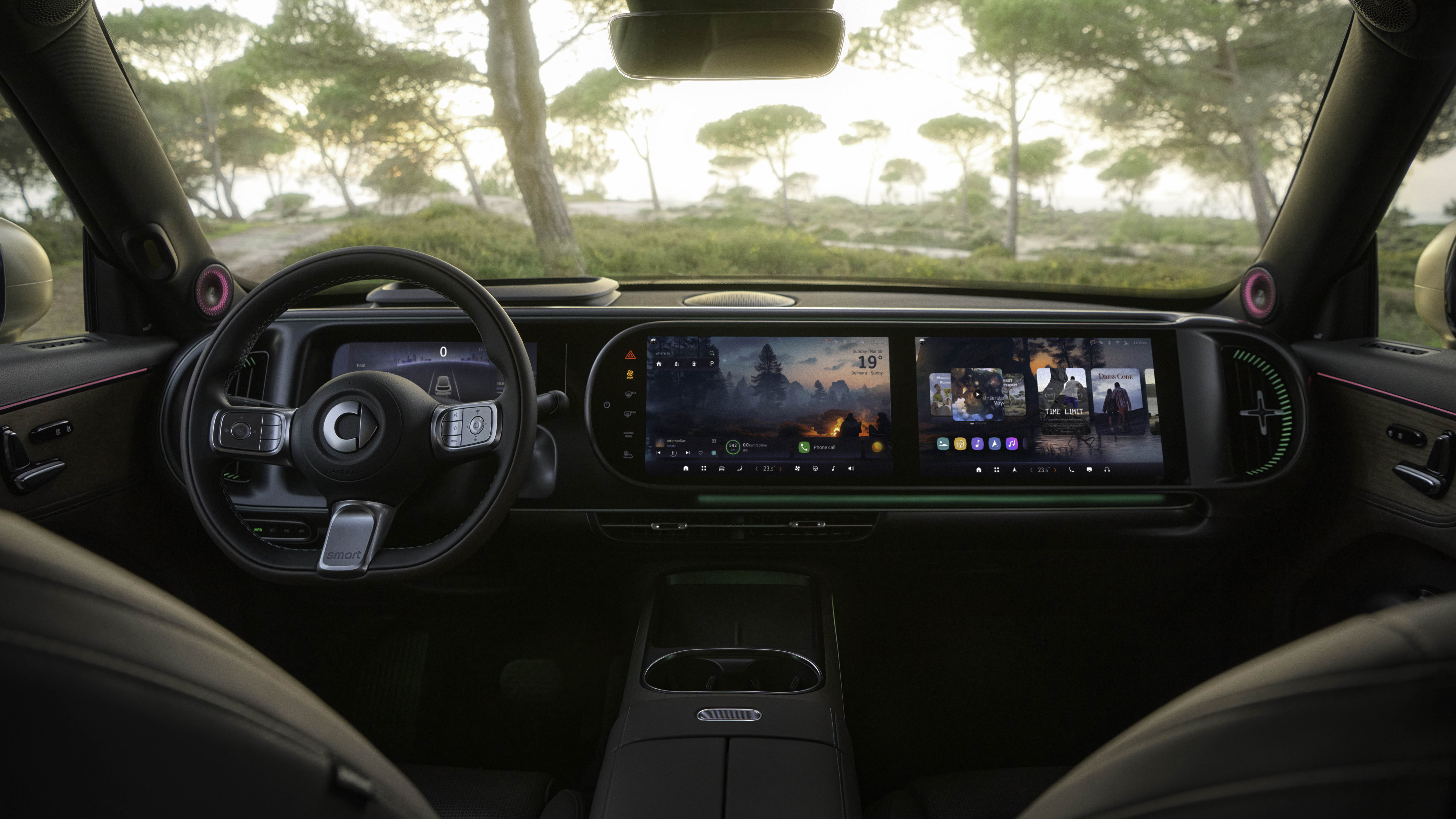 El smart #5 está equipado con un sistema de pantallas compuesto por un panel de instrumentos digital de 10,25 pulgadas más dos pantallas de 13 pulgadas cada una en el salpicadero. Estas pantallas ofrecen una interfaz de realidad aumentada que proyecta información directamente sobre el parabrisas.