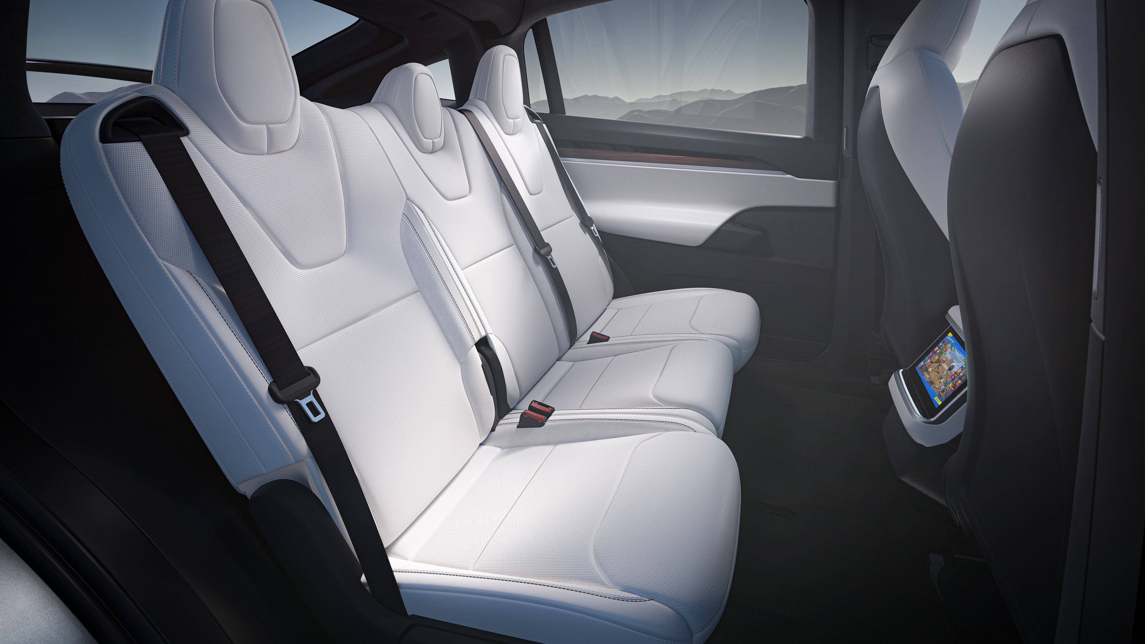 Con 2,97 metros de distancia entre ejes, el Model X puede alojar cómodamente hasta 7 ocupantes adultos en su interior (disposición 2+3+2). Esta configuración cuenta con un volumen para el maletero principal (trasero) de 357 litros con todos los asientos disponibles o de 958 litros con sólo dos filas desplegadas. Con los cinco asientos posteriores abatidos y disponiendo sólo de los del conductor y el acompañante, se puede lograr una capacidad de 2.166 litros. A estas cifras hay que sumar los 187 litros que ofrece el maletero secundario (delantero). Las cifras son iguales con la configuración de 6 plazas.