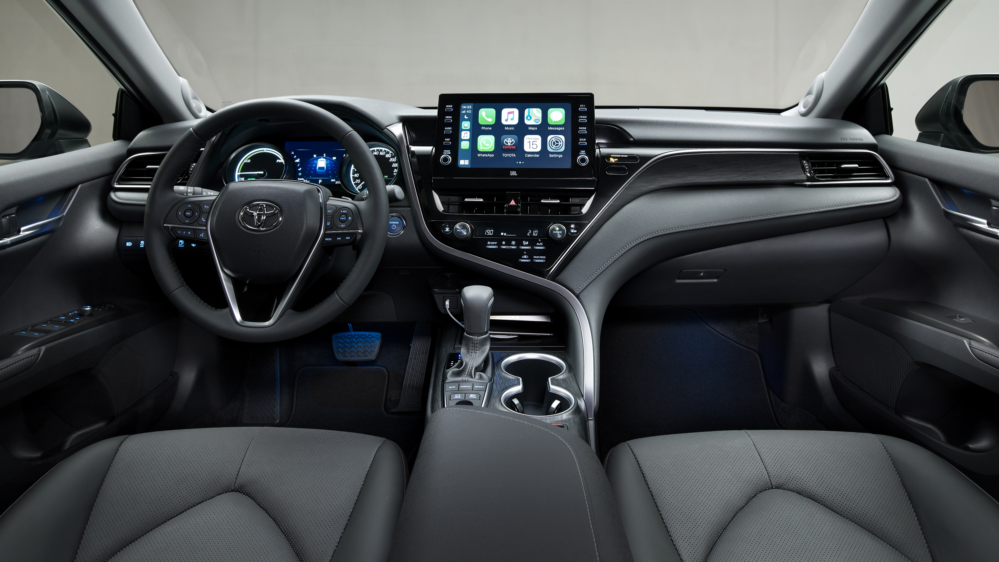 El sistema de infoentretenimiento del Toyota Camry ofrece Apple Car Play y Android Auto con una pantalla táctil de 7 o 9 pulgadas. Su funcionamiento es correcto, aunque carece de aplicaciones como el asistente virtual tipo Alexa como ya ofrecen algunos rivales.