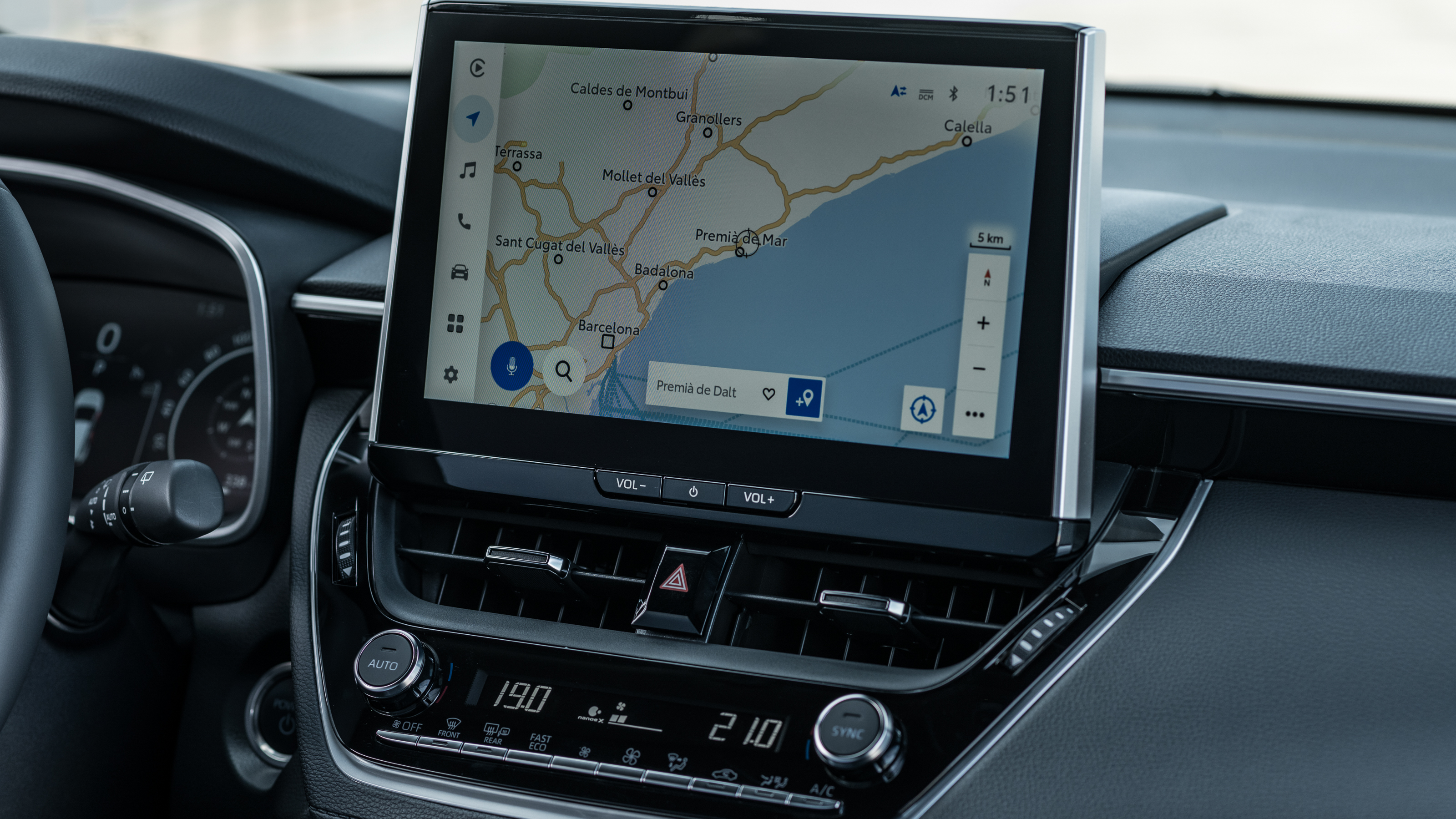 No es un sistema multimedia bueno para el estándar actual y es difícil de comprender que Toyota descuide este detalle. Cualquier modelo competidor de SEAT, Skoda, Hyundai, KIA o Renault, por citar algunos, ofrece una pantalla con mejor respuesta táctil y una interfaz mejor resuelta. Parece un sistema diseñado hace al menos una década. No obstante, Apple CarPlay (en mi caso, al tener in iPhone), facilita mucho las cosas para el día a día.