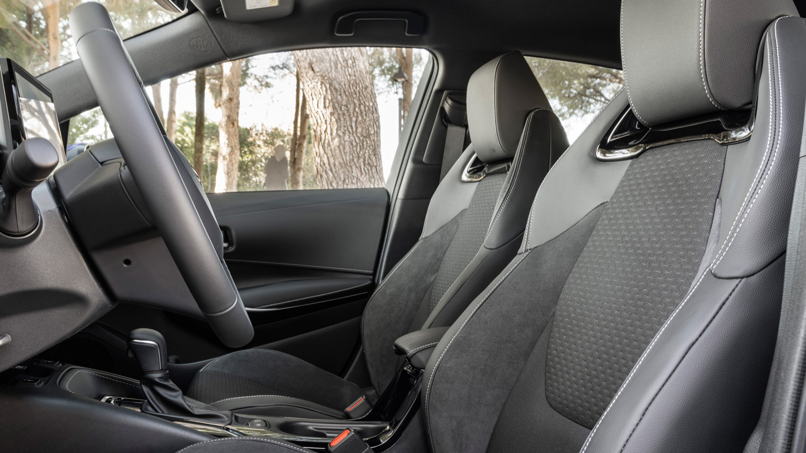 El Toyota Corolla Hatchback se puede pedir con dos tipos de asientos, los convencionales y los deportivos que llevan las versiones GR Sport. Ambos son confortables, pero hay una diferencia importante en lo que respecta a la sujeción del cuerpo. En los Corolla GR Sport los apoyos laterales son más prominentes y te soportan mejor en las curvas. En cualquier caso, los ajustes disponibles (longitudinal, altura e inclinación del respaldo) permiten encontrar fácilmente la postura de conducción idónea.