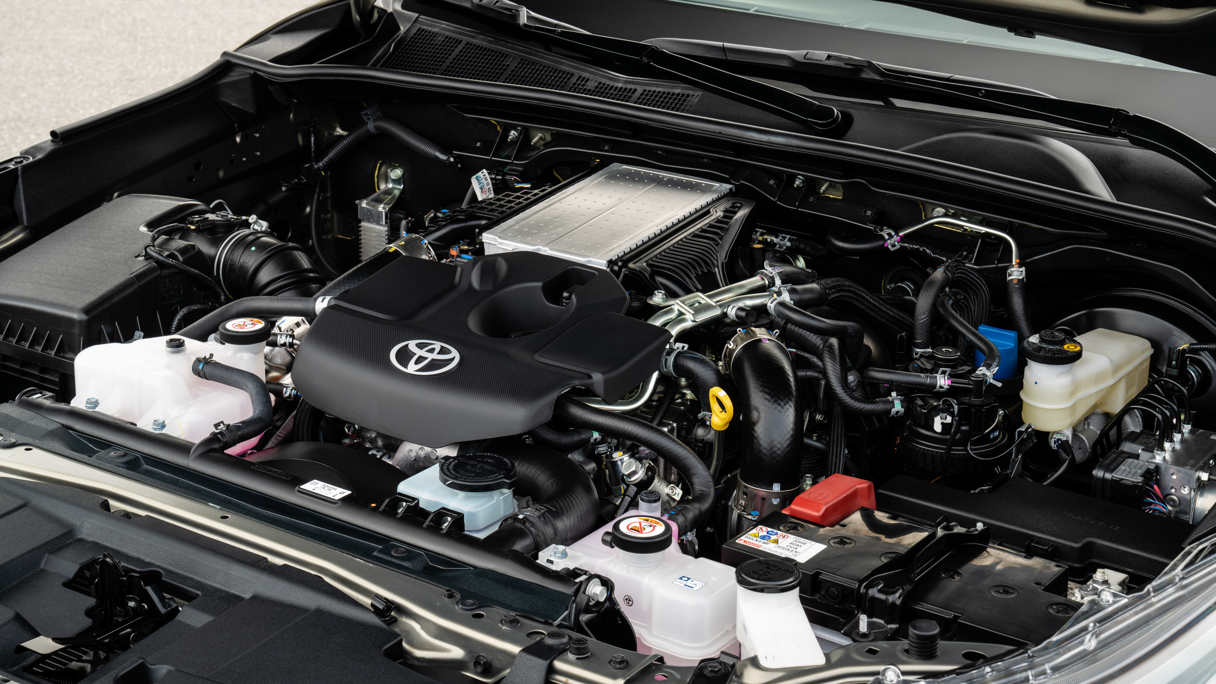 La principal novedad de la gama es la introducción del Toyota Hilux Hybrid 48V, el primer Hilux electrificado de la historia. Este sistema mild hybrid se asocia exclusivamente al motor 2.8 diésel y no altera las capacidades clave del modelo: conserva hasta 1.000 kg de carga útil, 3.500 kg de capacidad de remolque y 700 mm de capacidad de vadeo. Su objetivo es mejorar el refinamiento y la respuesta a baja velocidad, no transformar el planteamiento del vehículo.
