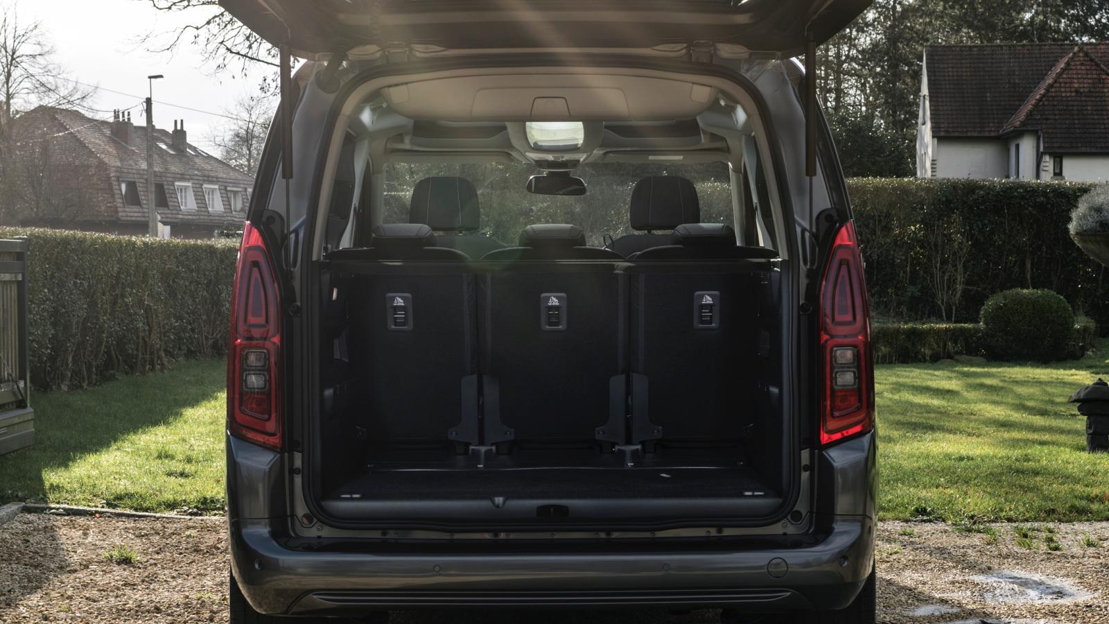 Gracias a que hay dos carrocerías diferentes podemos escoger el Proace City Verso Electric que más se adapte a nuestras necesidades, aunque cualquiera de los dos ofrece un volumen de maletero muy generoso ya que el sistema eléctrico no molesta en absoluto. La carrocería más corta cuenta con un volumen mínimo de 597 litros, ampliables por encima de los 1.600 litros si abatimos la segunda fila de asientos. La carrocería larga aumenta la cota mínima de carga hasta los 850 litros, pudiendo ofrecer más de 2.000 litros de maletero si se abate por completo la banqueta trasera.