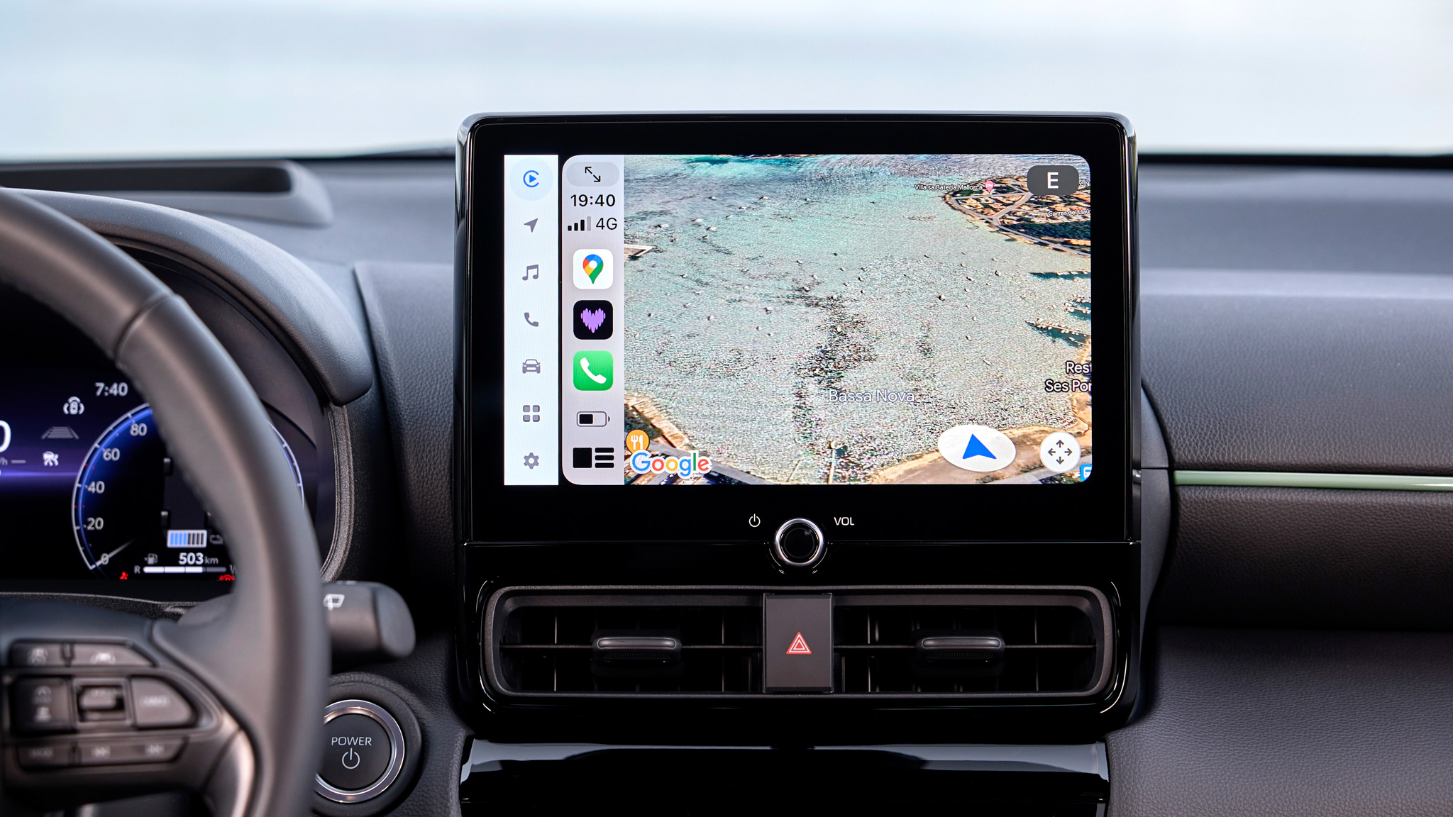 El sistema multimedia Toyota Smart Connect, con capacidad de descargar actualizaciones de software de forma inalámbrica, fue estrenado por el Yaris Cross de 2024 y es ahora de serie en todos los acabados. Gracias a una pantalla de 10,5 pulgadas y una interfaz renovada, es mucho mejor que cualquier otro sistema que hayamos visto en Toyota anteriormente. Responde con mayor fluidez, los menús son más intuitivos y su aspecto es mucho más atractivo. Como corresponde a un sistema actual, tiene conectividad inalámbrica con Android Auto y Apple CarPlay y tiene un servicio de conexión a internet que permite, entre otras cosas, modificar y consultar parámetros del vehículo a distancia.