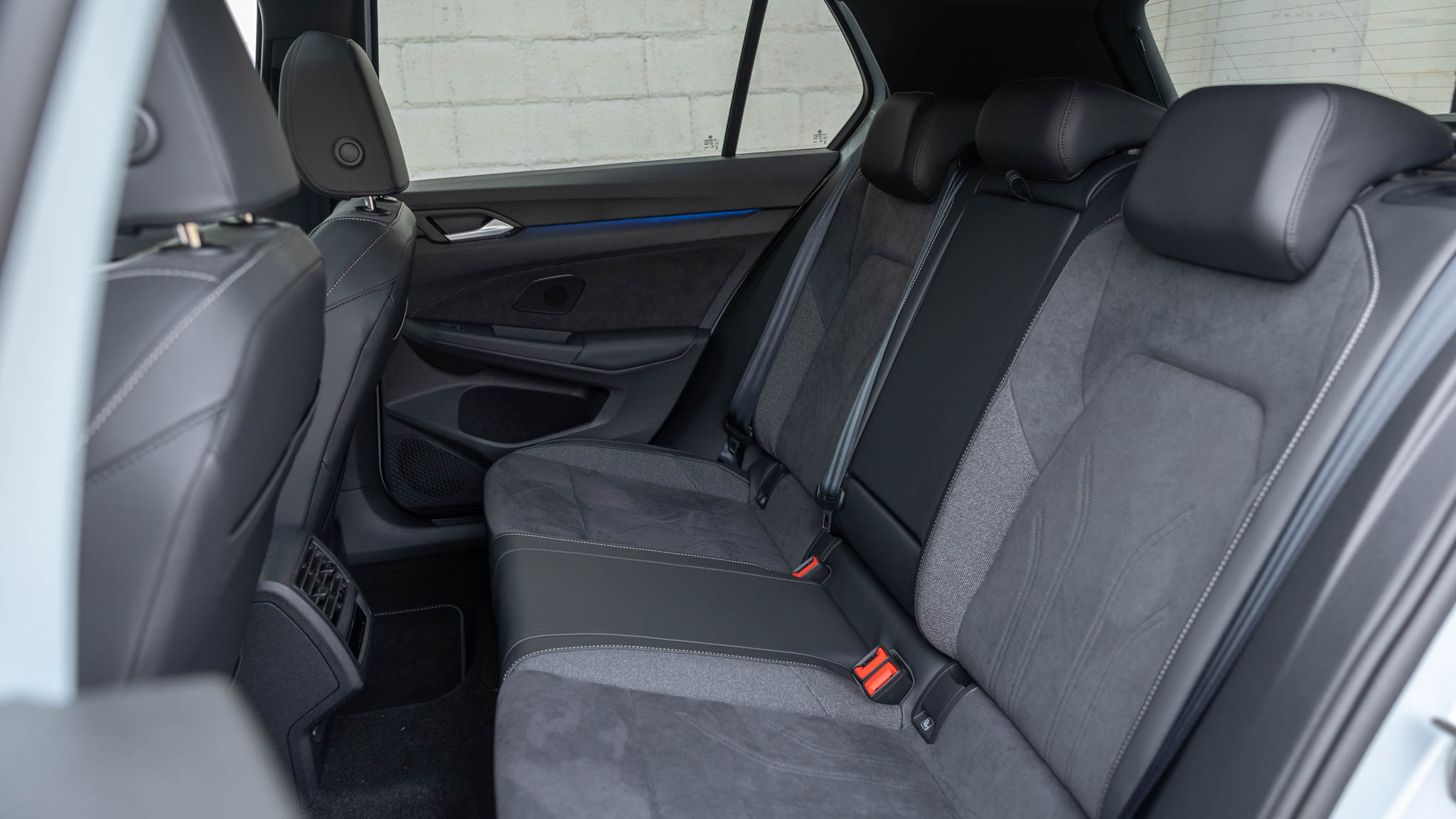 En términos de amplitud, el Golf ofrece un espacio adecuado para cuatro pasajeros, aunque irán bien especialmente en la parte delantera. En la fila trasera, aunque la altura libre es generosa y cómoda para pasajeros altos, el espacio para las piernas es algo limitado. Las puertas traseras tienen un ángulo de apertura correcto que facilita la colocación de sillas infantiles.