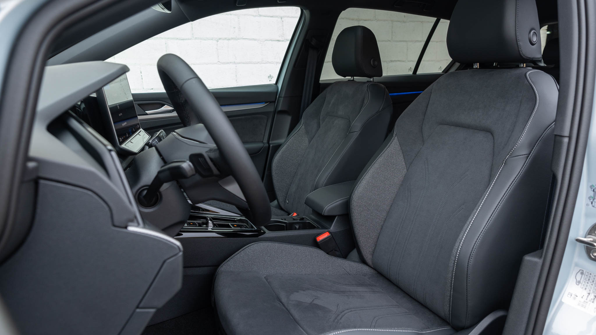 El Volkswagen Golf presenta un interior con un diseño suficientemente limpio y moderno, con la ventaja de que recupera botones físicos y más controles que no dependen de superficies táctiles, lo que le devuelve practicidad. La calidad percibida es correcta sin ser llamativa, con materiales agradables al tacto en las partes superiores del salpicadero y las puertas delanteras. Sin embargo, los plásticos en las zonas bajas y en las puertas traseras son más duros, lo que disminuye ligeramente la sensación premium.