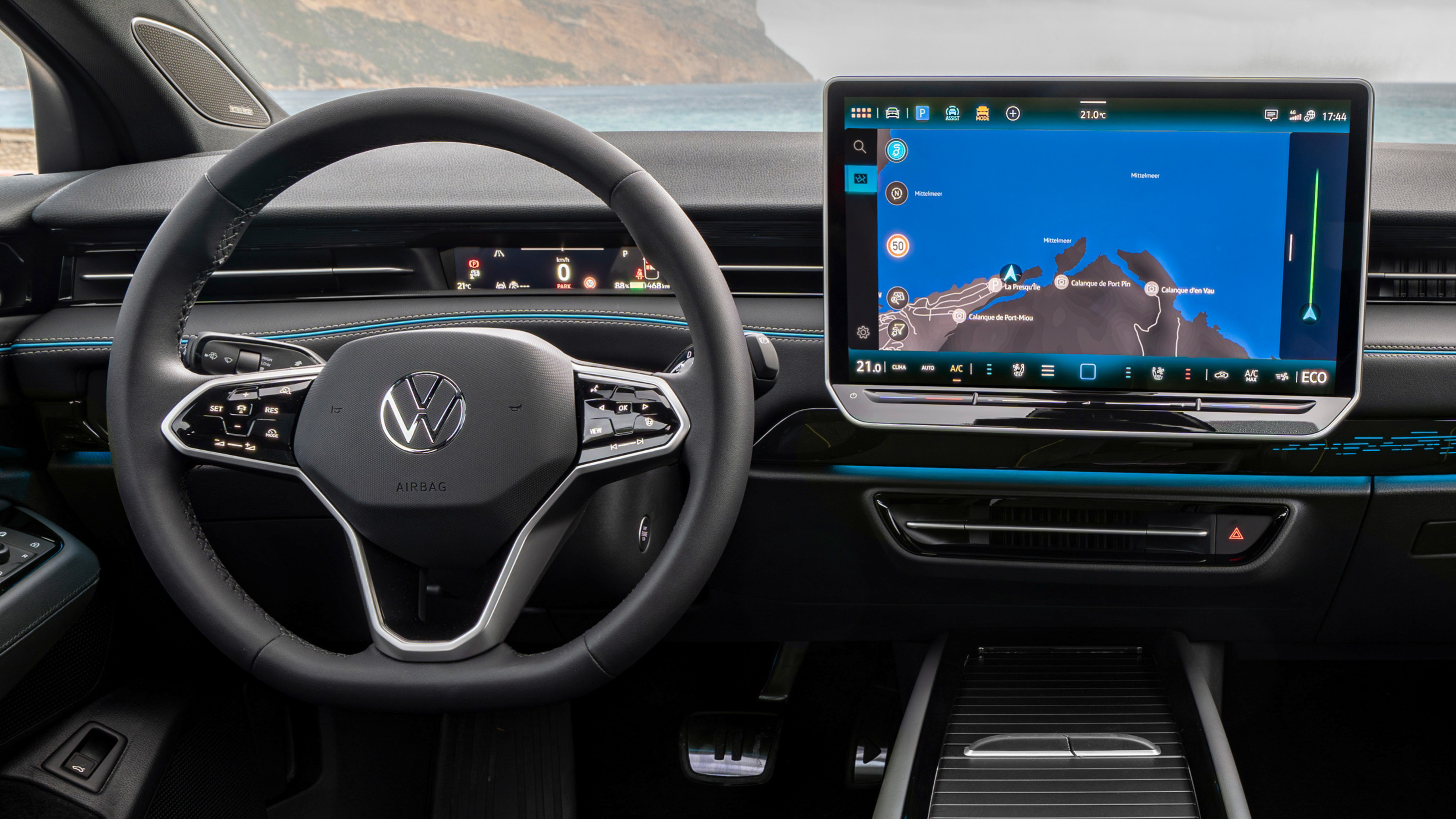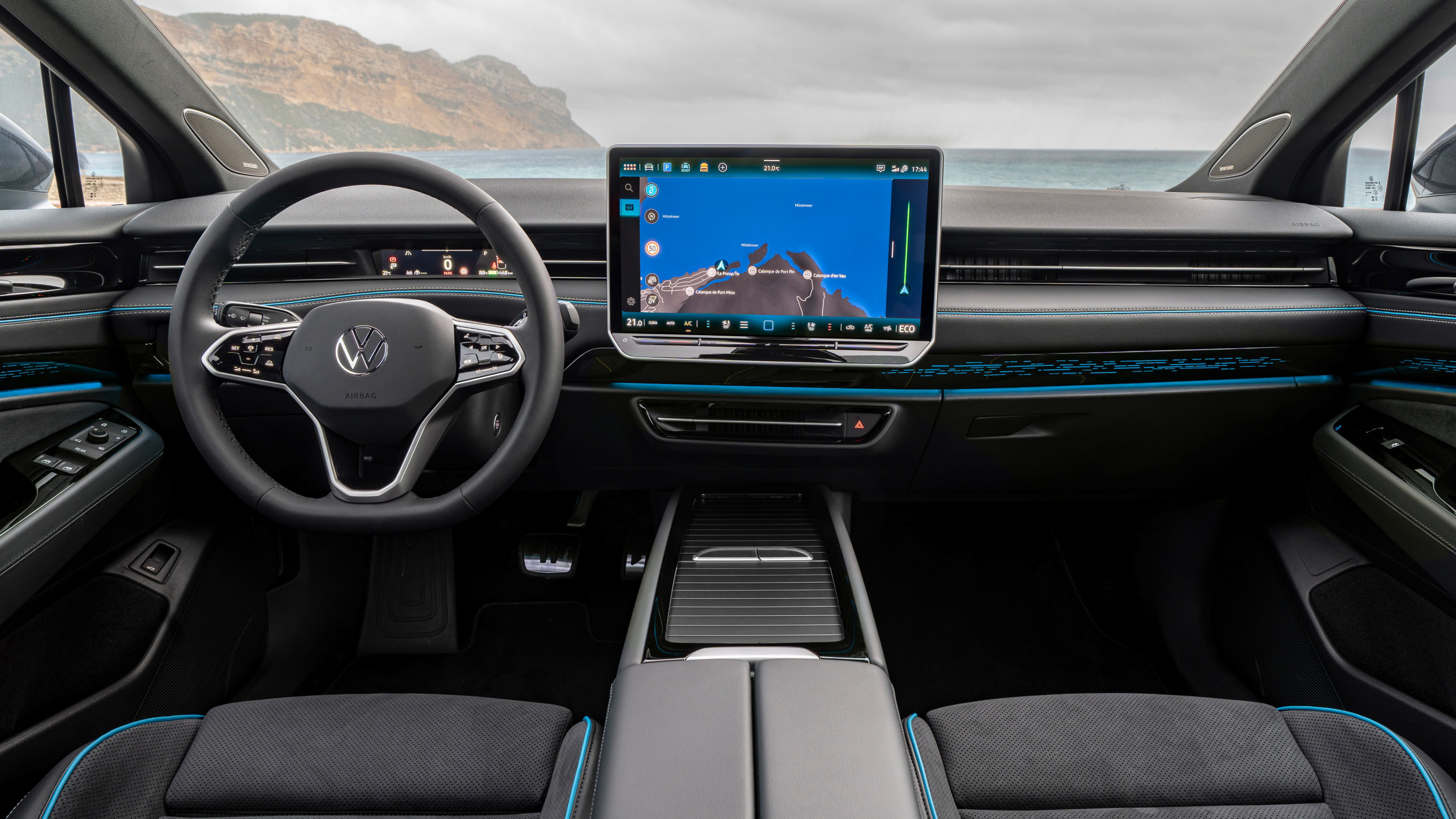 Otros elementos de serie son una superficie para la recarga inalámbrica de teléfonos móviles y cuatro tomas de USB-C (dos delante y dos detrás). Como viene siendo ya tradición en los últimos modelos de Volkswagen, la pantalla central aglutina prácticamente todas las funciones del vehículo, incluido el climatizador.