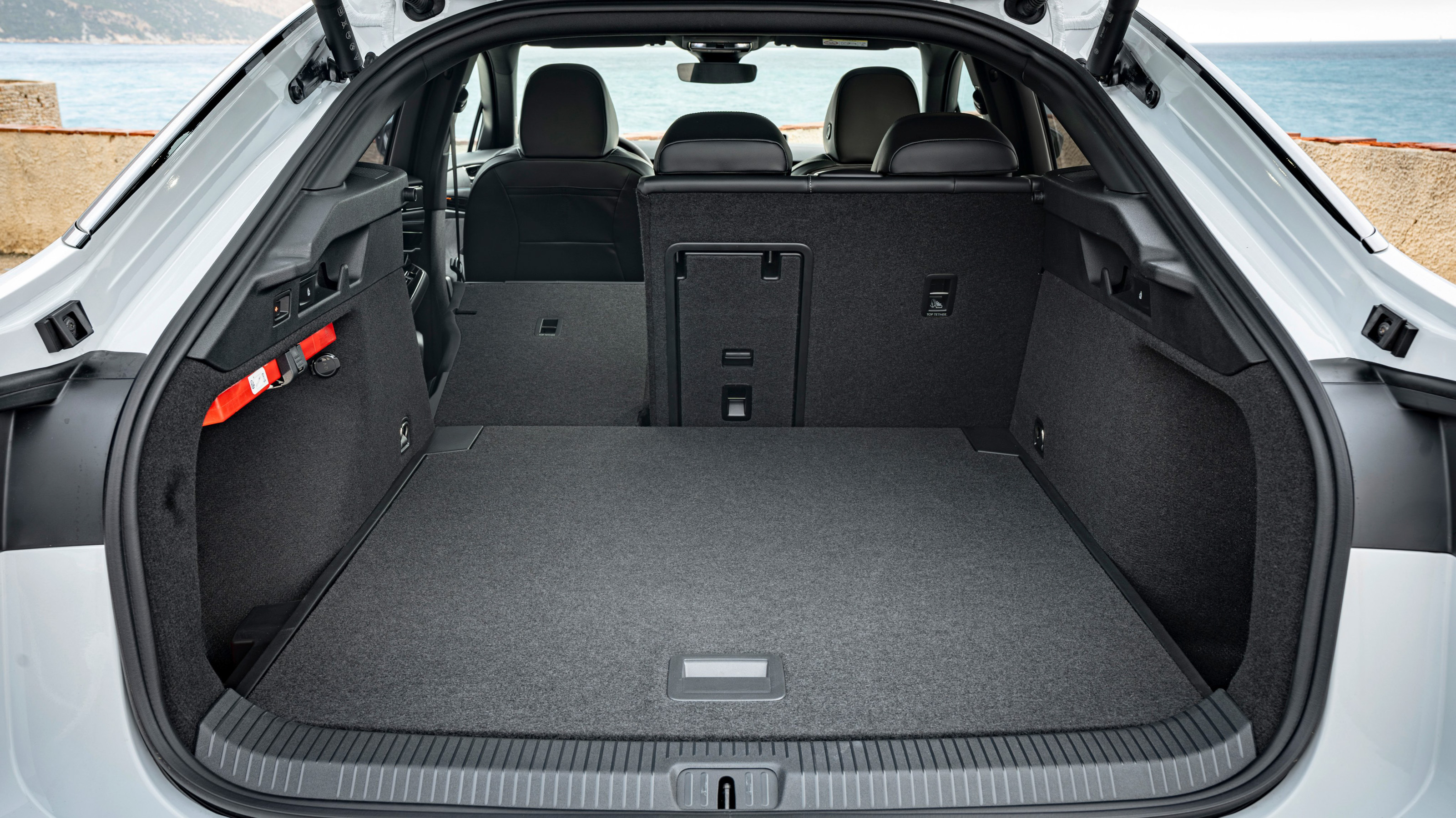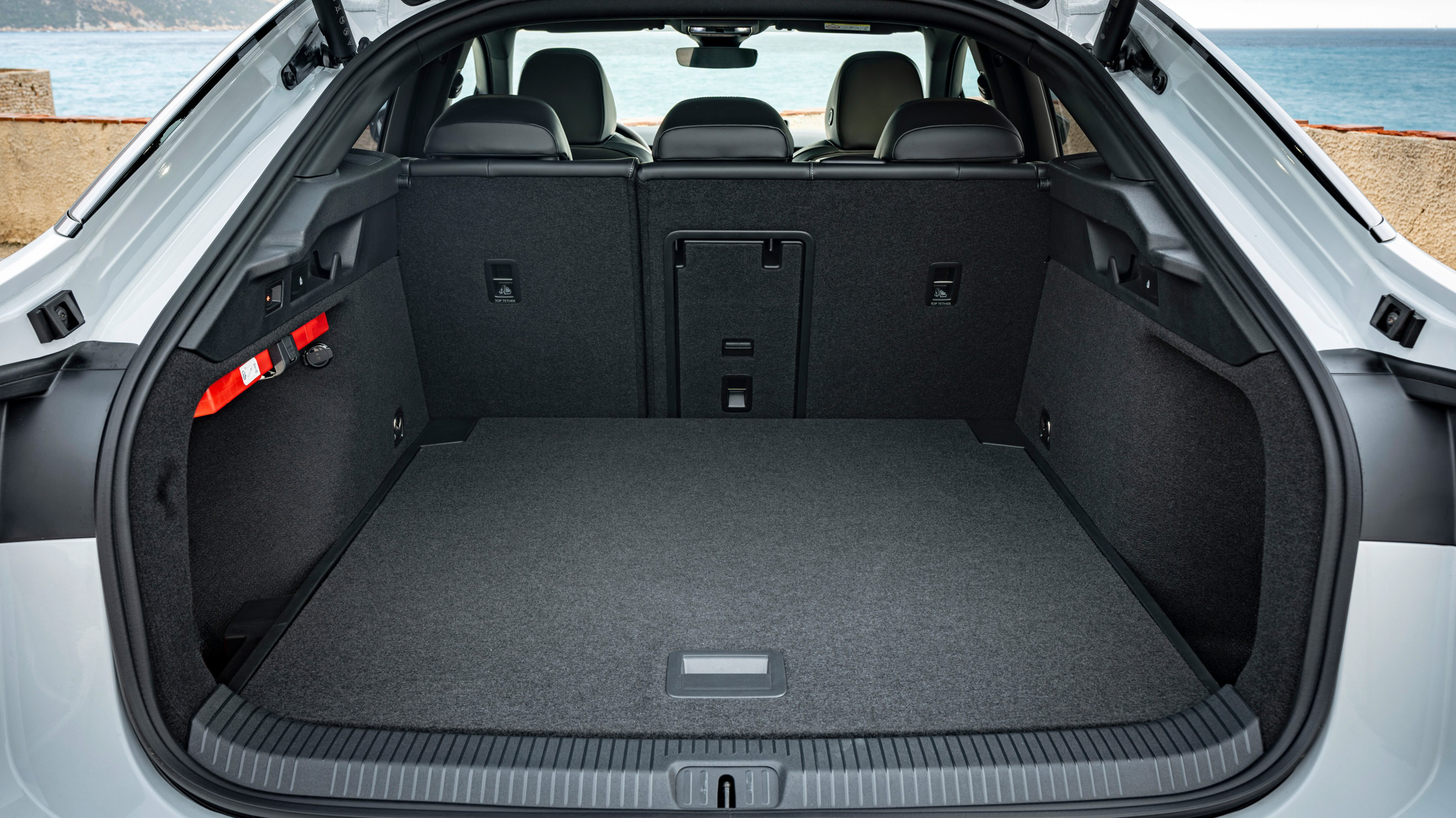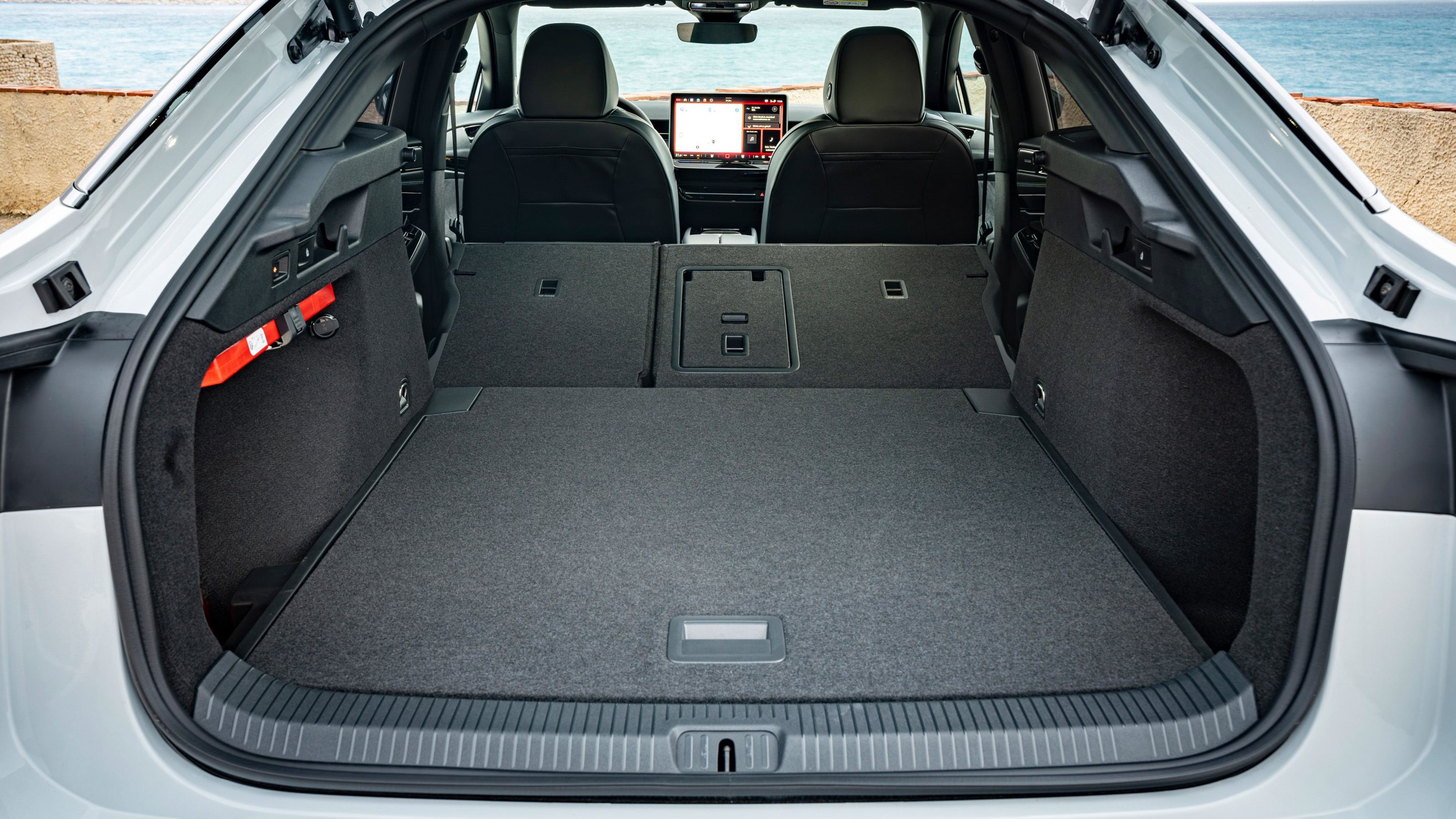 Al maletero se accede a través de un gran portón con apertura eléctrica. Como el piso queda totalmente enrasado con el borde de carga, resulta sencillo meter y sacar objetos. La bandeja del piso se puede colocar a dos alturas. Los respaldos de los asientos posteriores se pueden abatir y dejan una superficie enrasada con la del maletero, pero no totalmente plana. Con esta configuración, el volumen de carga total disponible es de 1586 litros.