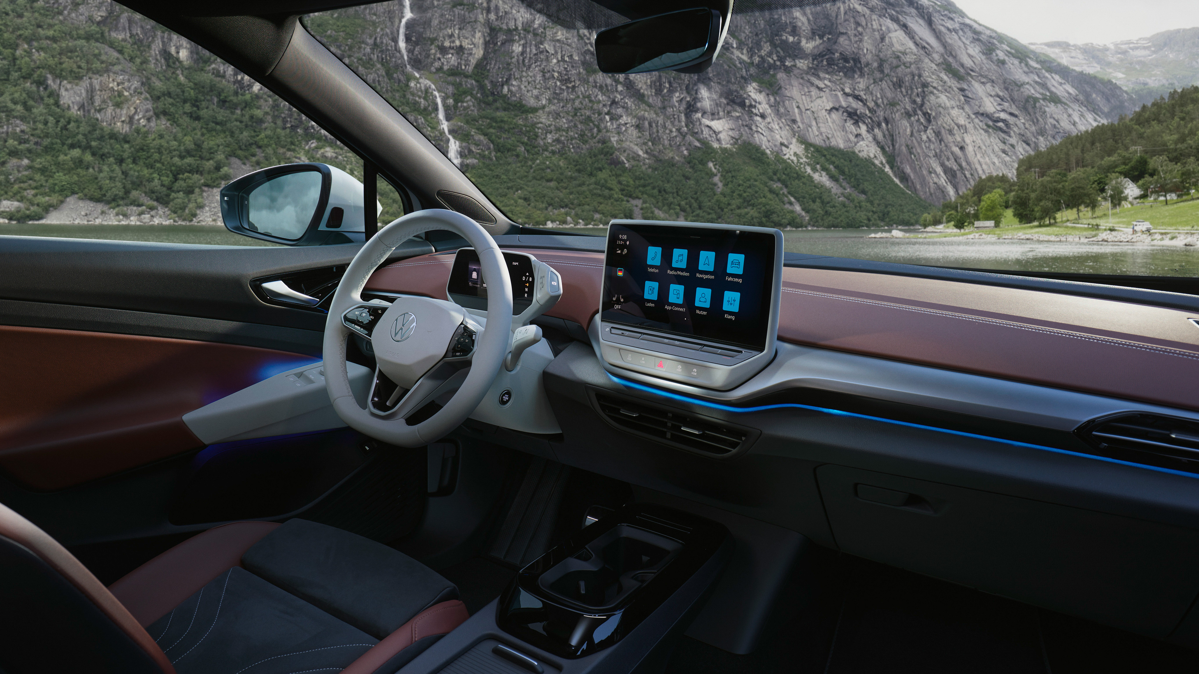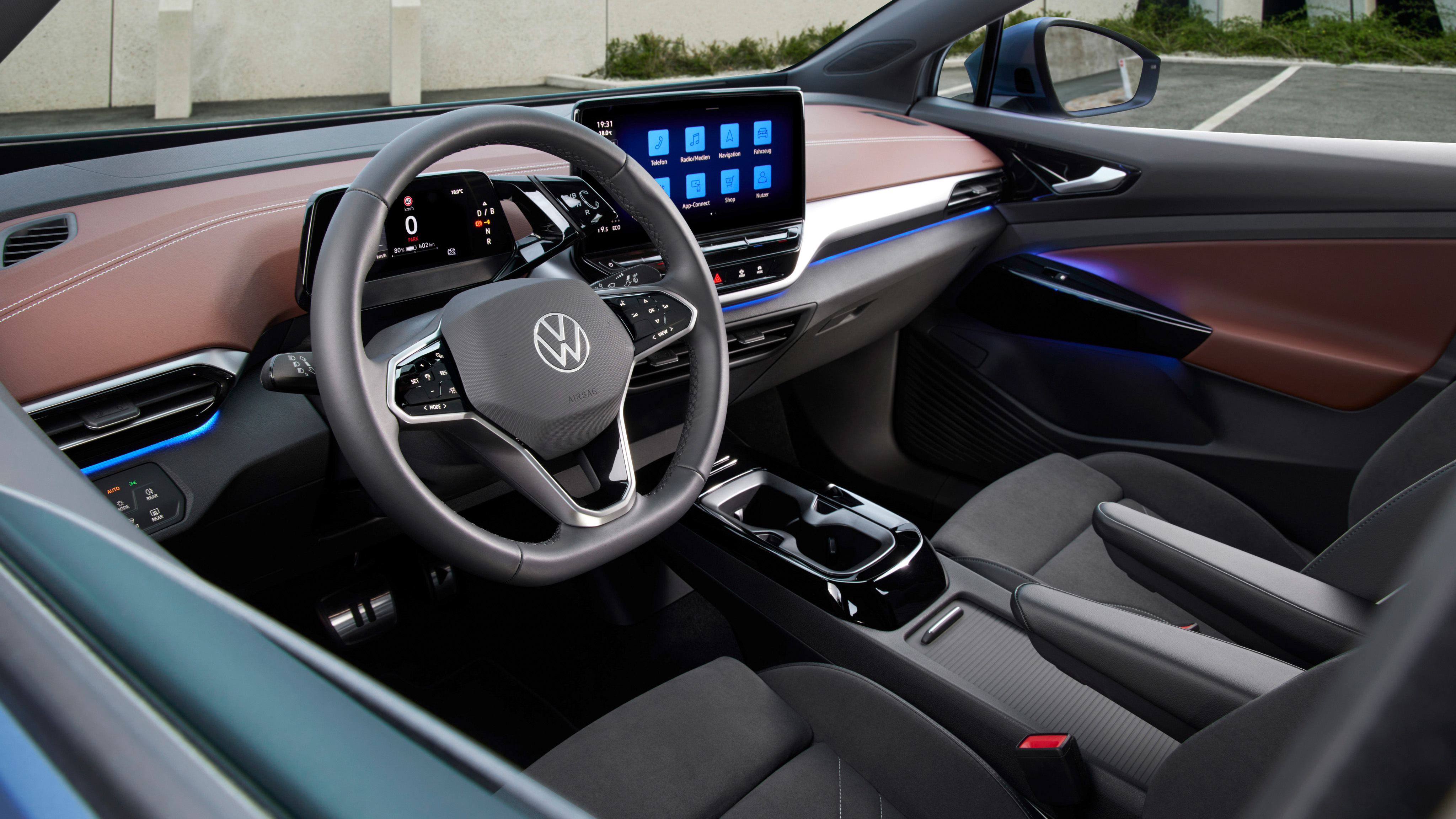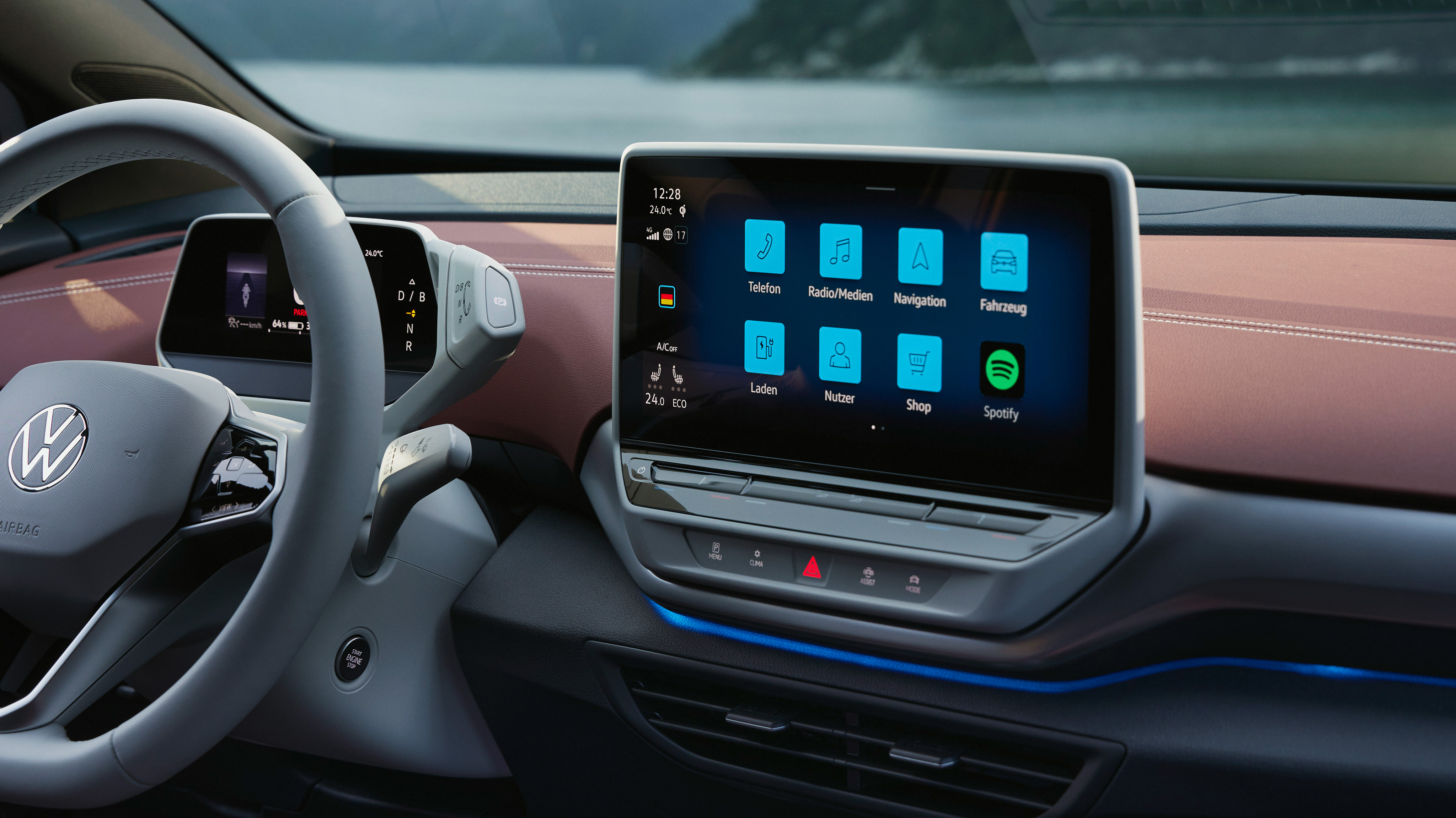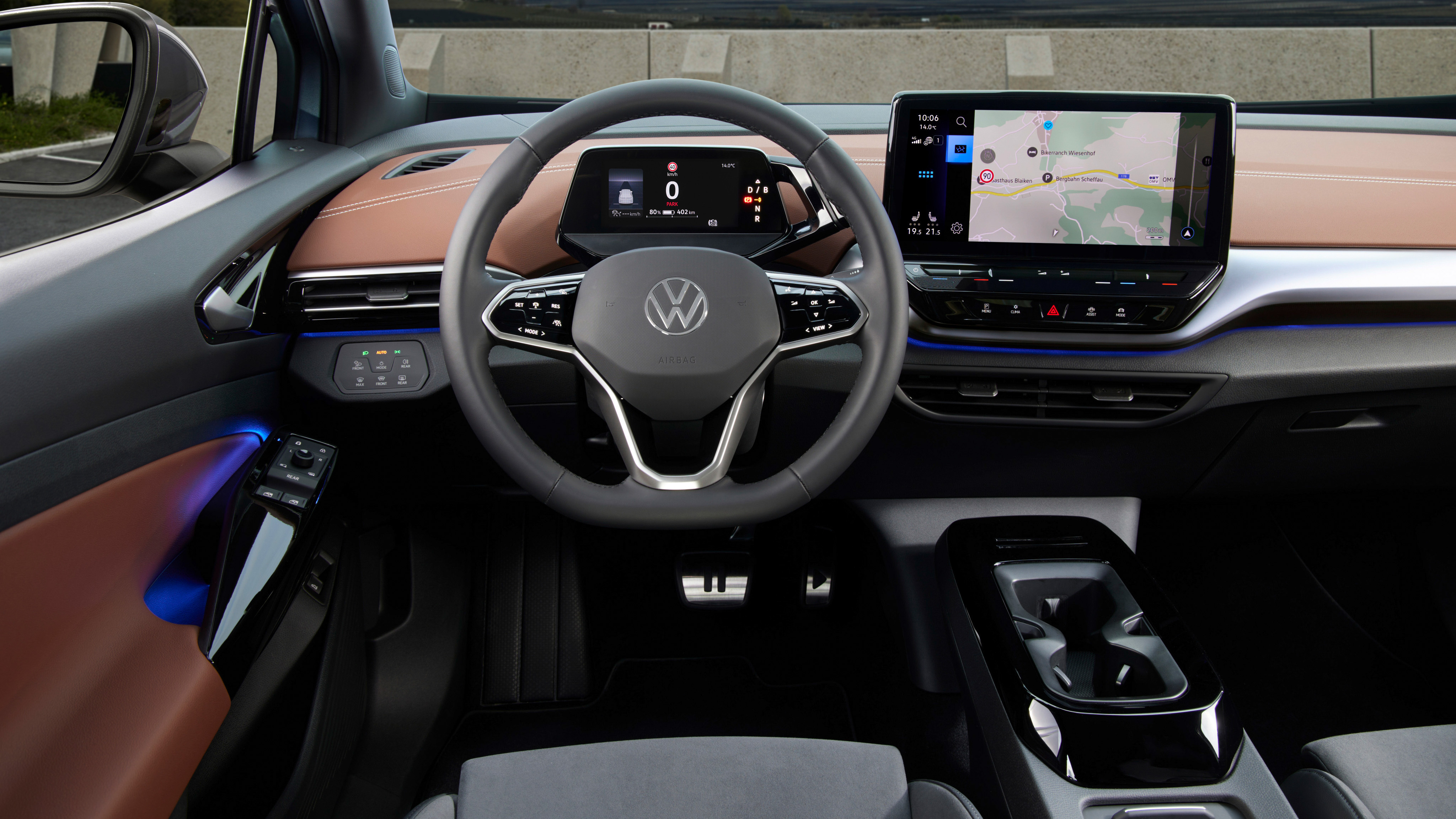 El Volkswagen ID.5 tiene una pantalla táctil multimedia de 12 pulgadas sobre el centro la consola, por encima de las salidas de ventilación. Tiene buena resolución, pero es más sensible a los reflejos que otras y su respuesta es muy lenta. Volkswagen ha prescindido de botones mecánicos para funciones tan básicas como la climatización, algo que no nos parece acertado y que seguramente te distraiga al conducir.
