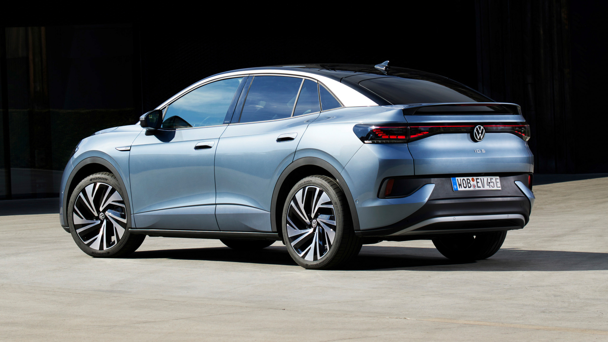 Con 4,60 metros de longitud, el Volkswagen ID.5 es sólo dos centímetros más largo que el ID.4, aunque esta diferencia se debe principalmente a que en la parte trasera hay un alerón que sobresale un poco del perfil de la carrocería. Este detalle y la inclinación del techo y del portón del maletero es, básicamente, lo que distingue ambos modelos, que comparten plataforma, parte de la gama de motores y la batería de mayor capacidad, con 77 kWh útiles.