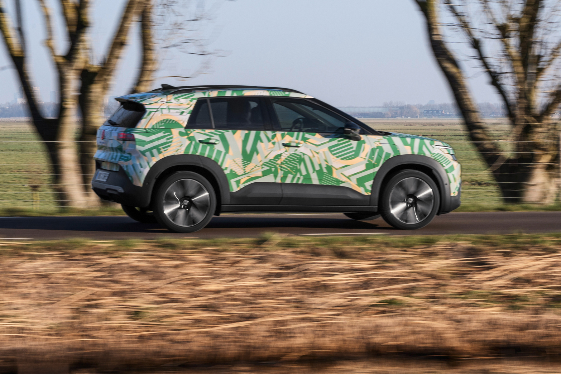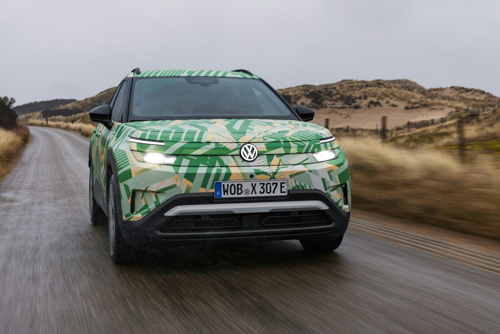 Las imágenes captadas en Ámsterdam muestran un coche todavía camuflado, pero que ya deja entrever su diseño definitivo. El ID. Cross adopta el nuevo lenguaje estético de Volkswagen, denominado “Pure Positive”, con líneas más limpias, proporciones equilibradas y una imagen más sobria y madura. Frente al concept, el modelo de producción parece apostar por un enfoque más realista, con menos elementos futuristas y una estética más cercana a lo que el cliente final espera de un SUV compacto.