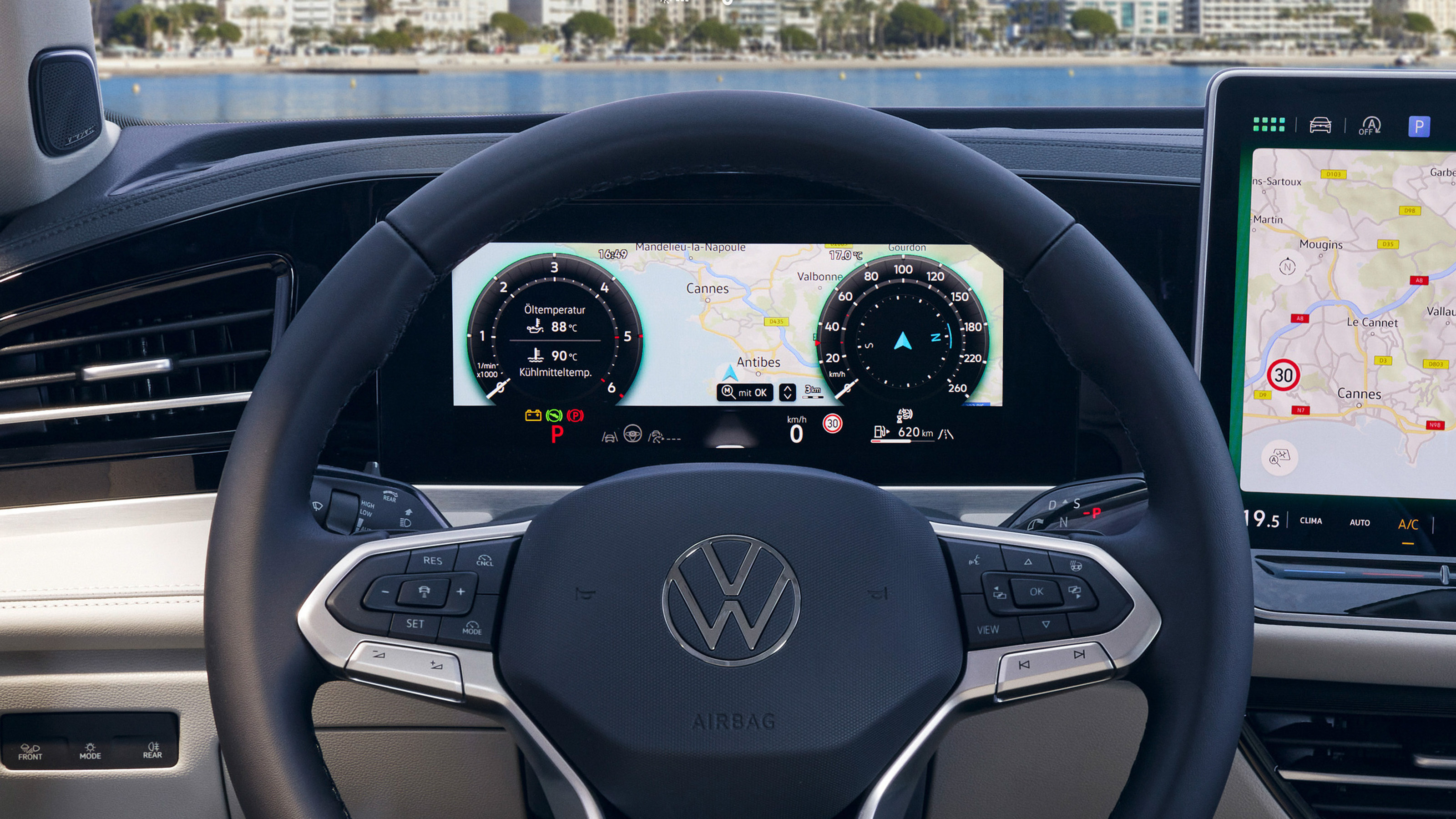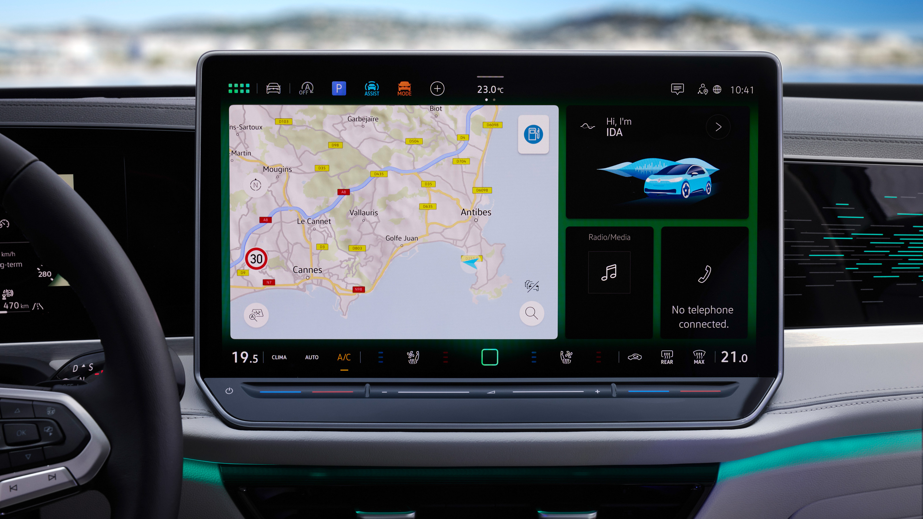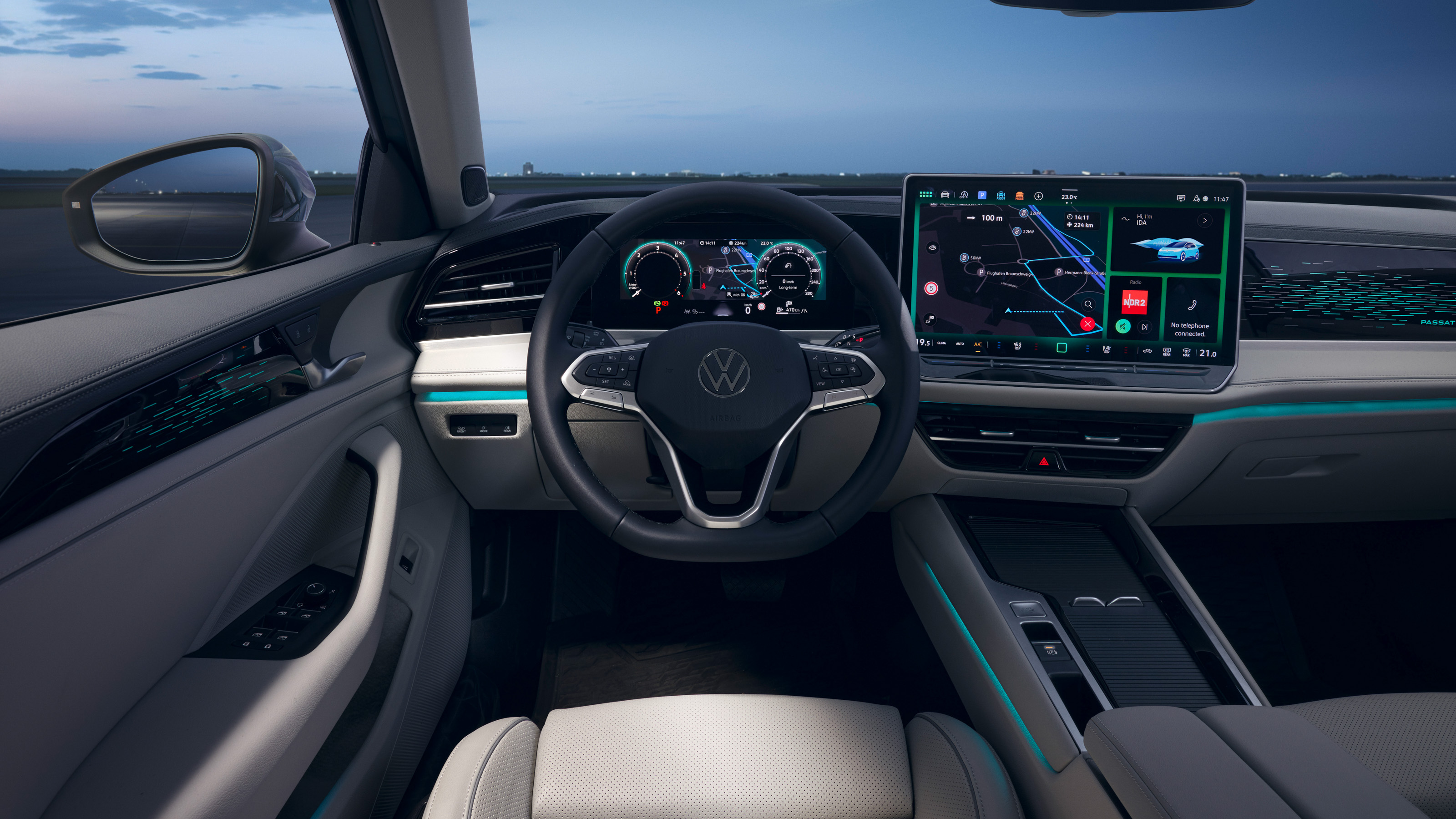 El Passat Variant lleva el sistema multimedia más moderno de Volkswagen, denominado MIB4, y que destaca por tener una pantalla central enorme, de 15 pulgadas, de serie en el acabado R-Line, y opcional en los demás, que por defecto tienen una de 12,9 pulgadas. A primera vista, la pantalla parece de buena calidad y parece que los menús están mejor estructurados que en los sistemas multimedia recientes de Volkswagen.