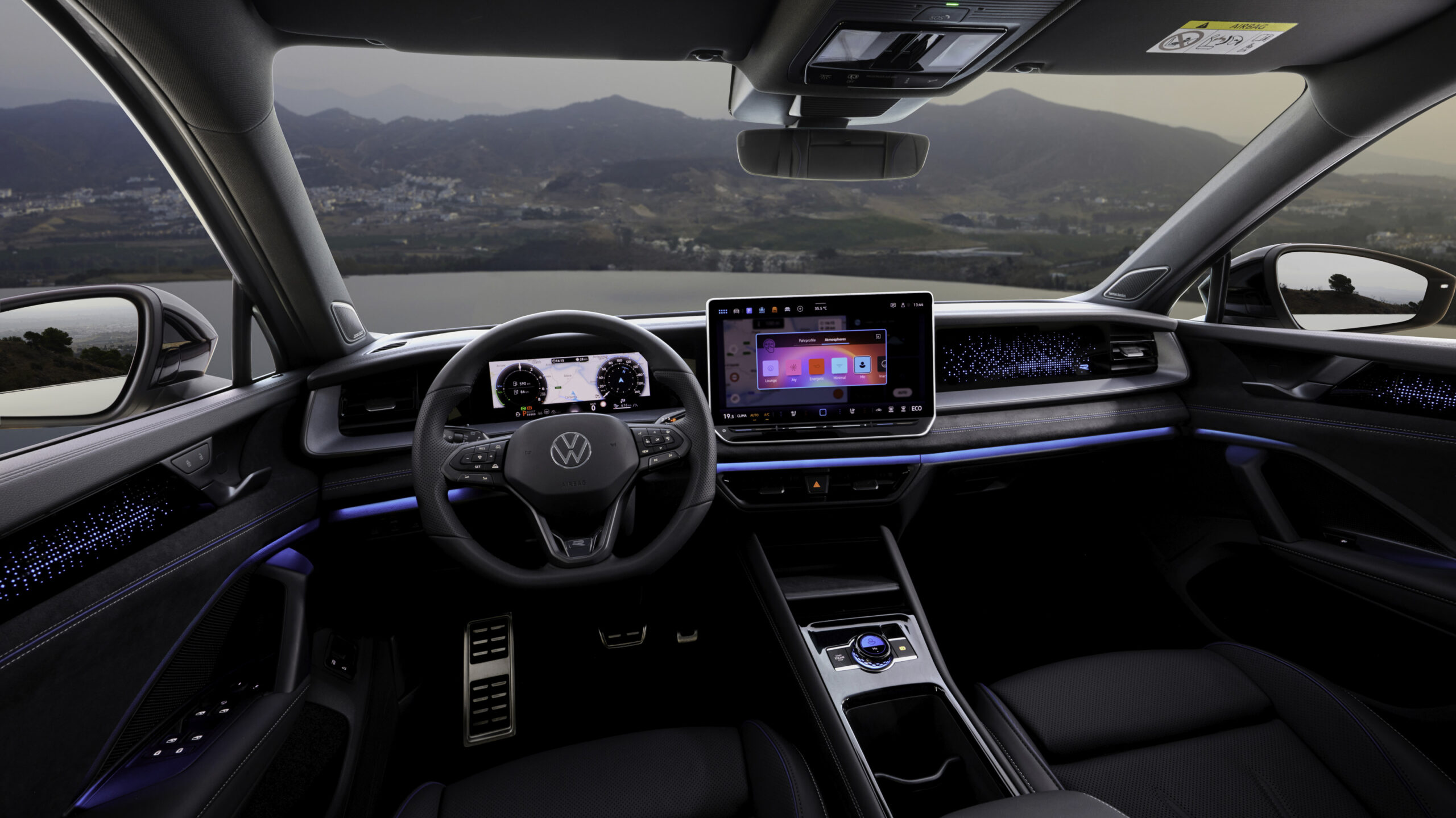 Los asientos pueden ser eléctricos, calefactados y ventilados con función de masaje, y el Tayron ofrece climatizador de tres zonas, un sistema de iluminación ambiental configurable en diez colores o techo solar panorámico.