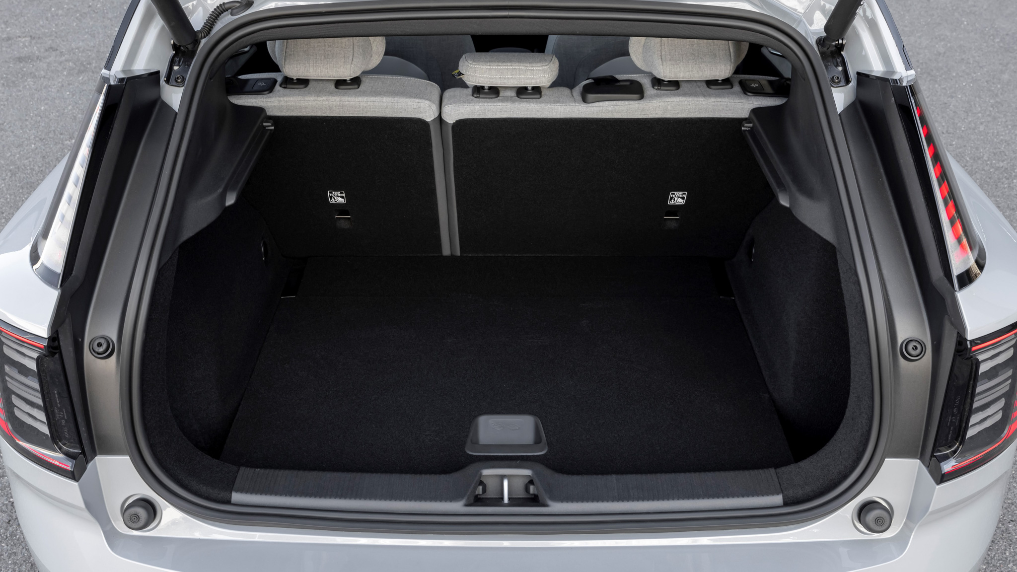 El maletero principal del EX30 ofrece 318 litros de capacidad, que es menor en comparación con otros modelos del segmento, como el Kona Electric (466 litros). Sin embargo, su diseño es práctico, con formas regulares que facilitan la carga de objetos. Además, cuenta con un pequeño maletero frontal de 7 litros, ideal para guardar cables de carga y otros elementos pequeños, evitando ensuciar el maletero principal.
